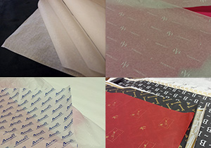 Набор сверхтонких бумаг тишью для печати логотипа, которые могут использоваться в качестве упаковочного материала для хрупких предметов, посуды, обуви, одежды, подарков, для изготовления межстраничных вкладок в фотоальбомах, а также в пищевой промышленности, мыловарения, в области флористики для составления и декорирования букетов: