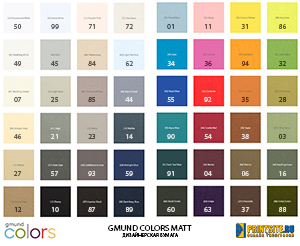 Бумаги коллекции имеют матовую поверхность, которая напоминает фетр, и имитирует бумагу ручной выделки. «Гмунд Колорс» - бумага, окрашенная в массе, что обеспечивает естественные натуральные цвета. Каждый цветовой тон коллекции был специально подобран таким образом, чтобы темные и светлые тона, а также тона различных цветовых групп сочетались друг с другом и могли свободно использоваться в различных комбинациях.